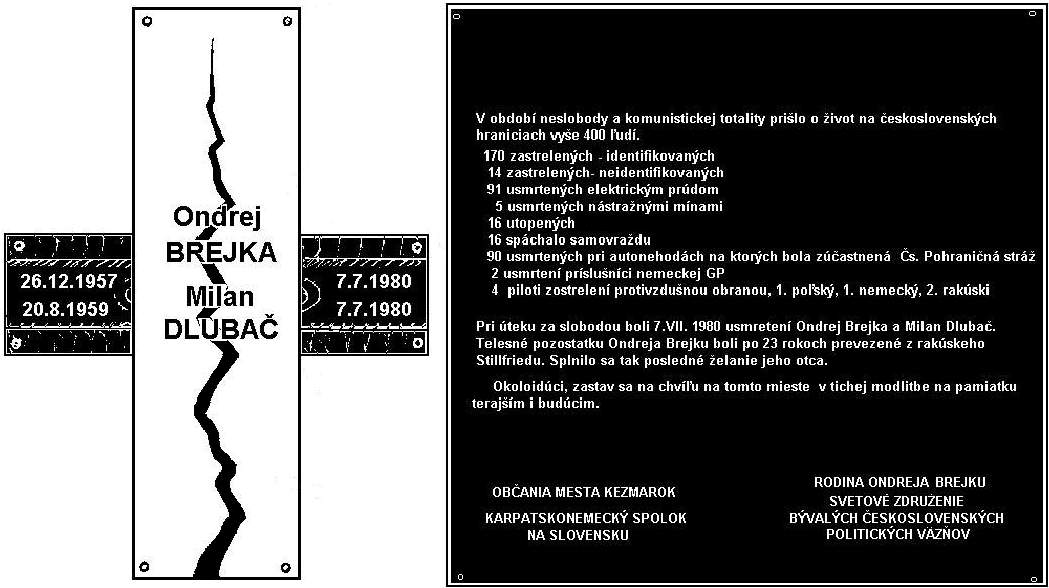 Medzi vyše 400 usmrtenými na hraniciach v rokoch 1948-1989 boli aj Ondrej Brejka a Milan Dlubač. Dňa 7.7.1980 boli usmrtení pohraničnou strážou. Ako jediný z trojice, ktorá sa rozhodla pre útek z bývalého Československa prežil Jozef Imrich. Život mu zachránil pes Ondreja Brejku-Nemecký ovčiak Besina, ktorého sa držal za srsť keď plával cez rieku Moravu na rakúsky breh.